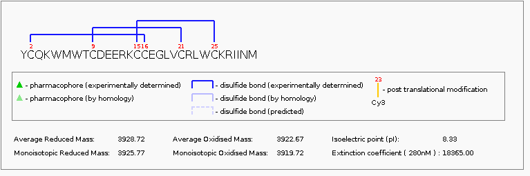 >as:κ-theraphotoxin-Gr2a|sp:P60273 Toxin from the spider Grammostola rosea that inhibits Kv4.2 and Kv4.3 channels YCQKWMWTCDEERKCCEGLVCRLWCKRIINM |
